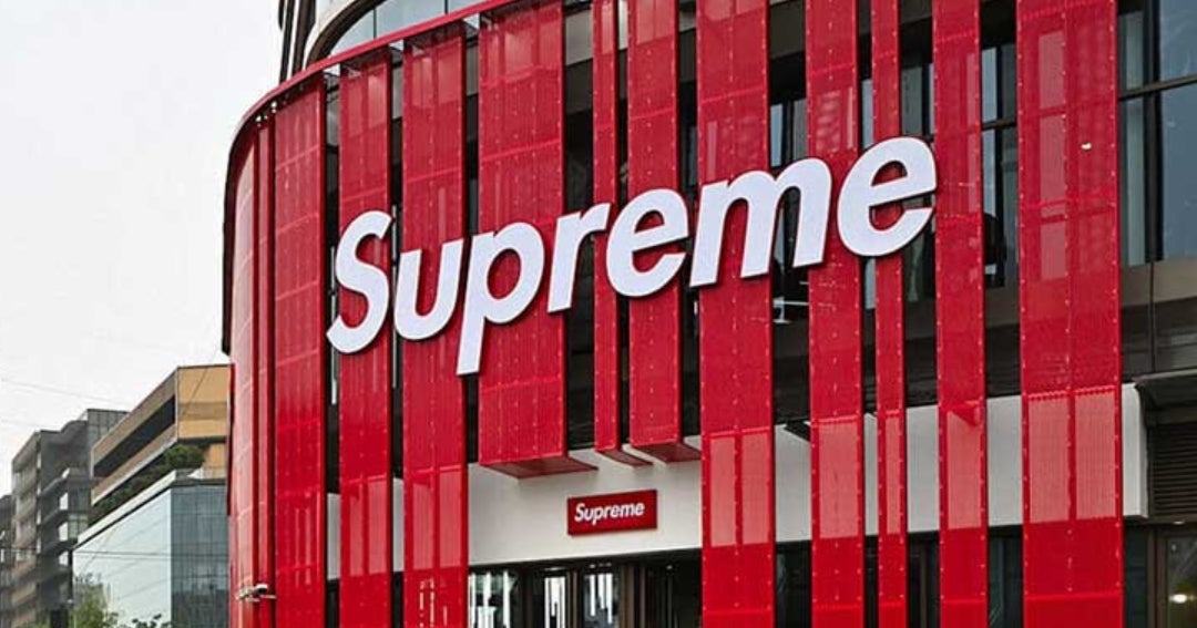Su sencillo y distintivo logotipo, también conocido como boxlogo en inglés, con «Supreme» escrito en blanco sobre fondo rojo está basado en la propaganda artística de Barbara Kruger.